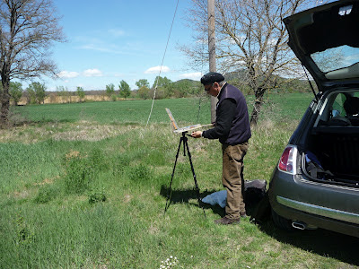 Painting outdoors is difficult enough, and then you compound your troubles with painting in a foreign country, especially with oil paints. All the hassles of airport security, etc, and buying supplies here; oil paint, turpentine, medium...which is how I have chosen to do it.